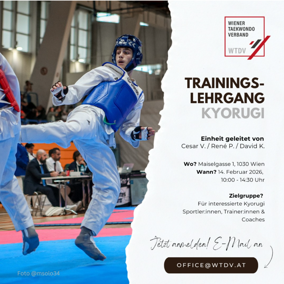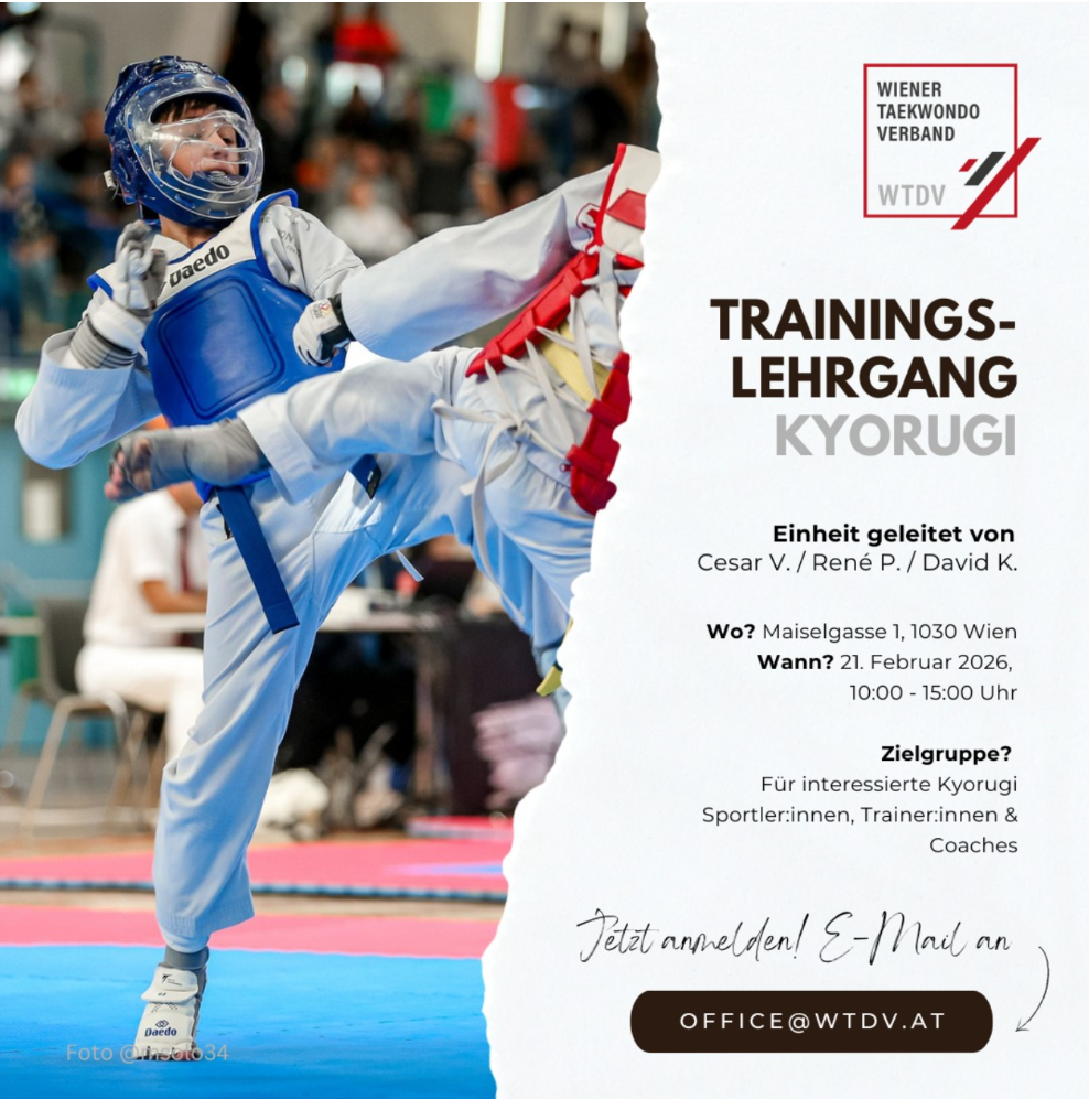 Am Sonntag, 21.12. 25 findet im Dojang Manna Asia Sports, Blumauergasse 6, 1020, die außerordentliche Generalversammlung des WTDV statt. Beginn ist 10.00 Uhr.